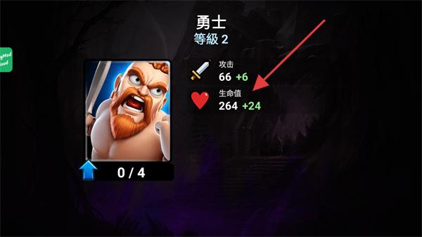 4、升級后勇士等級2的攻擊與生命值得到提升,屬性面板會顯示對應(yīng)數(shù)值增長,增強其對戰(zhàn)中的作戰(zhàn)能力。