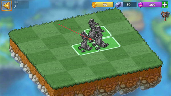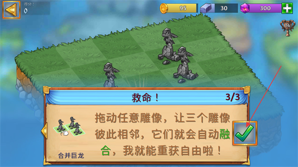 4、將雕像拖動(dòng)到同一綠色區(qū)域使其彼此相鄰,觸發(fā)自動(dòng)融合效果,完成這一步操作即可推進(jìn)以斯拉之墓關(guān)卡的進(jìn)度。