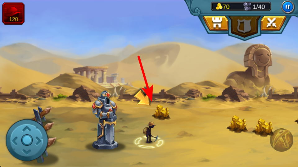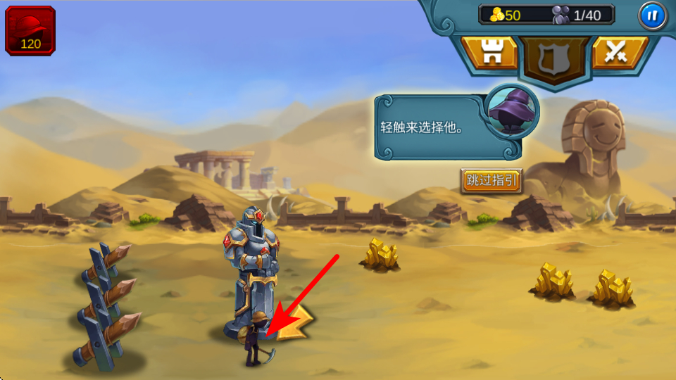 4、操控選中的礦工移動至金礦位置,這是推進(jìn)資源收集的重要操作,礦工到達(dá)后會自動采集金礦,持續(xù)積累金幣資源,擴(kuò)充戰(zhàn)場布局。