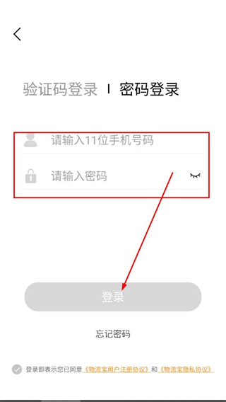 4、在密碼登錄頁面,填寫手機號碼和密碼,點擊登錄,完成賬號登錄操作。