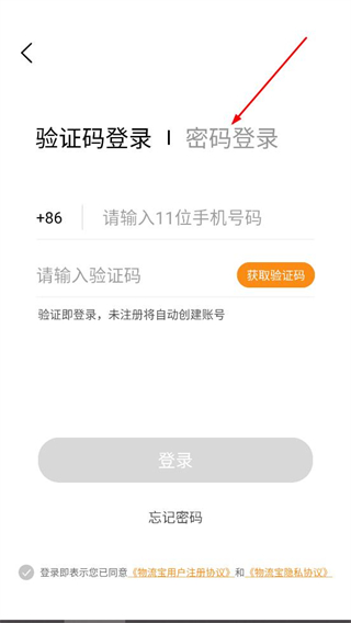 3、在登錄界面,點擊密碼登錄,可立即切換至密碼登錄頁面。