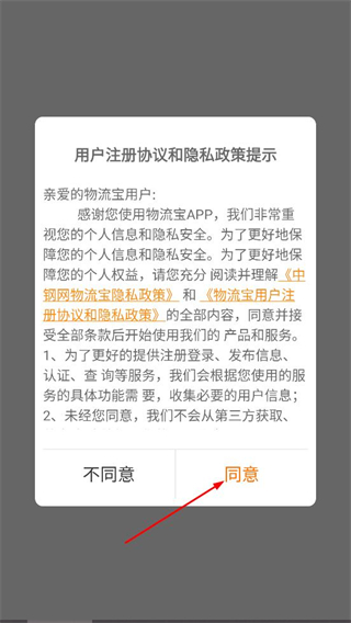 1、在用戶協(xié)議和隱私政策提示”彈窗中,點擊同意,進入首頁。