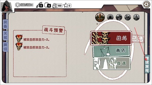 3、確認路線后點擊右側(cè)繼續(xù)旅程按鈕,即可進入實際的戰(zhàn)斗環(huán)節(jié),需依據(jù)預(yù)警信息準(zhǔn)備戰(zhàn)斗策略。