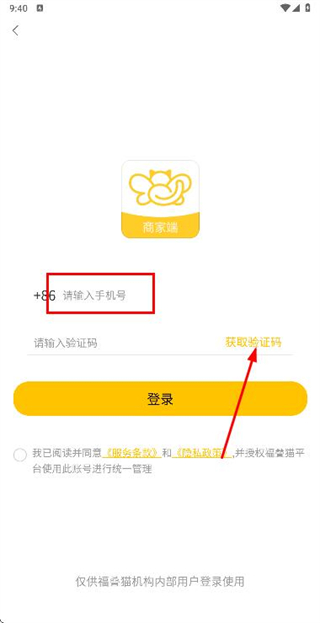 2、在驗證碼登錄頁面填寫手機(jī)號,勾選協(xié)議后,點擊獲取驗證碼。