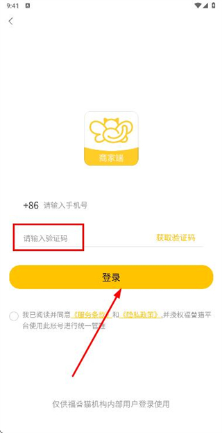 3、在驗證碼輸入框中填寫收到的驗證碼,點擊登錄完成賬號的登錄操作。