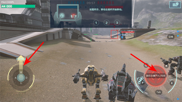 2、進(jìn)入戰(zhàn)場(chǎng)后操控移動(dòng)按鈕調(diào)整機(jī)甲位置,這是推進(jìn)戰(zhàn)斗的基礎(chǔ)操作,移動(dòng)后可讓機(jī)甲靠近敵方目標(biāo),為攻擊輸出鋪墊。