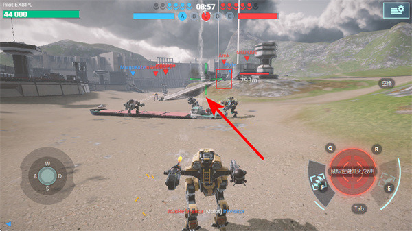 4、操控機(jī)甲向敵方目標(biāo)區(qū)域移動(dòng),保持節(jié)奏,這是壓制敵方的重要操作,靠近目標(biāo)后可提升攻擊命中率,加快勝利的進(jìn)度。