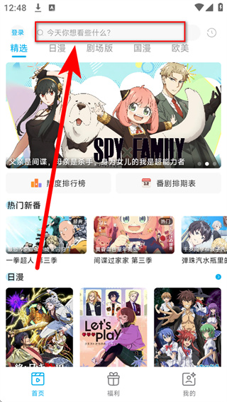 2、在搜索界面,在搜索框中輸入目標(biāo)動(dòng)漫名稱,點(diǎn)擊搜索。