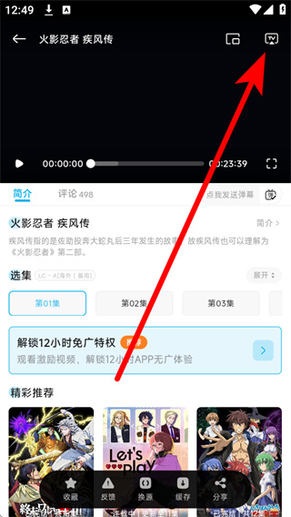 4、點(diǎn)擊播放頁(yè)面的右上角找到投屏圖標(biāo),即可按照頁(yè)面提示完成投屏操作。