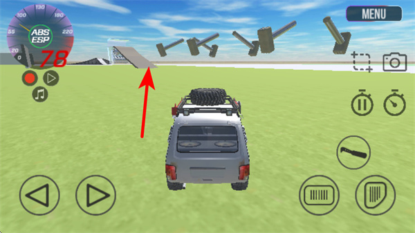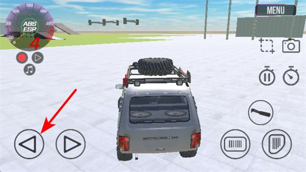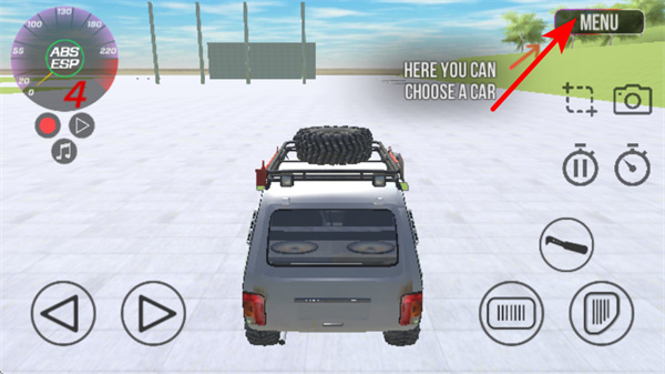 2、在駕駛界面點擊MENU按鈕,這是切換車輛的基礎(chǔ)操作,點擊后可打開車輛選擇界面,更換適合當前地形的車型,提升駕駛的適配性。