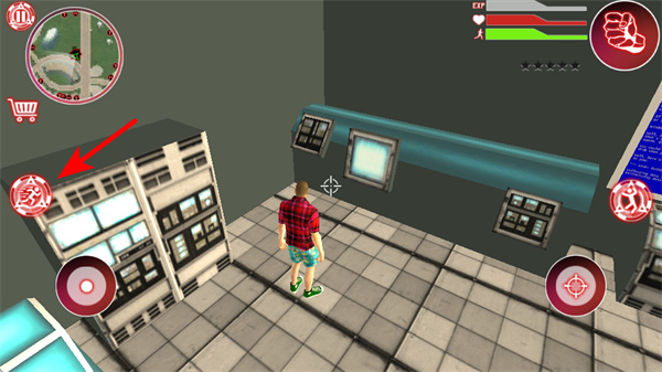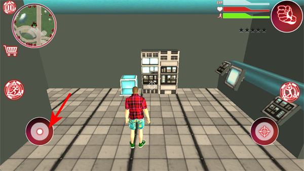 2、在城市場景中操控移動按鈕控制角色行走,這是探索區(qū)域的基礎(chǔ)操作,移動后可遍歷城市內(nèi)的建筑與設(shè)施,尋找內(nèi)容。