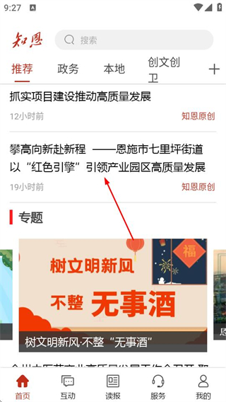 1、在恩施日報知恩首頁,點擊目標文章,進入文章詳情頁。