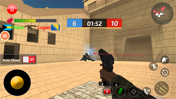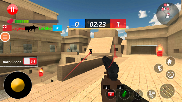 2、操控角色移動(dòng),瞄準(zhǔn)敵方目標(biāo)紅色標(biāo)識(shí)發(fā)起射擊,積累擊殺數(shù)。