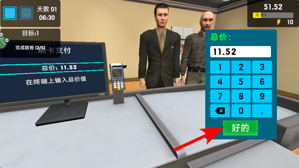4、點擊好的按鈕確認支付金額,這是完成結(jié)算的重要操作,確認后可完成該筆訂單的支付流程,完成結(jié)賬任務進度,積累經(jīng)營收益。