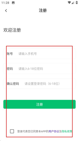 4、在注冊頁面,填寫信息并勾選協(xié)議后,點(diǎn)擊注冊完成賬號注冊。