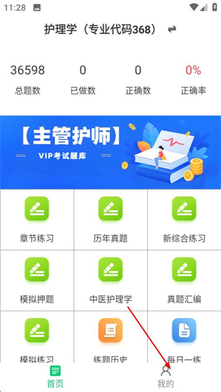 1、在主管護(hù)師鳴題庫首頁,點(diǎn)擊底部的我的選項(xiàng),進(jìn)入個人中心頁面。