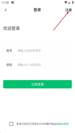 3、在登錄頁面,點(diǎn)擊右上角的注冊選項(xiàng),進(jìn)入注冊頁面。