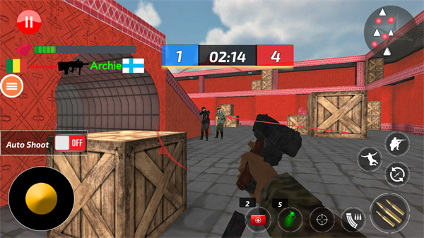 4、持續(xù)與敵方對戰(zhàn),通過掩體掩護(hù)、走位射擊的方式,保持火力輸出并提升最終得分。