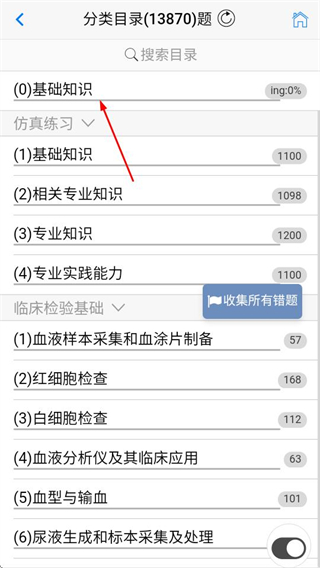 2、在分類目錄頁面,點擊基礎知識選項,進入對應的題目練習頁面。