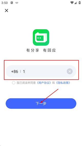 1、在口信的啟動頁面,點擊立即登錄口信,進入登錄的手機號填寫頁面。