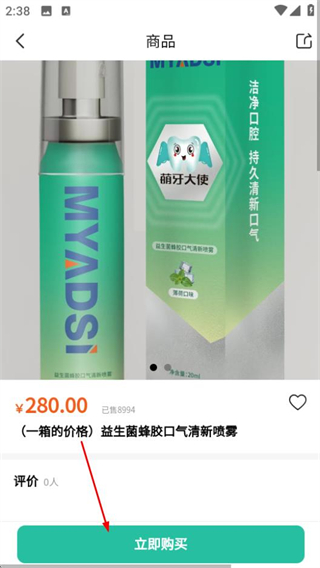 2、在商城頁面,點擊目標商品如益生菌蜂膠口氣清新噴霧,進入商品詳情頁。