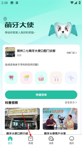 1、在萌牙大使首頁,點擊底部的商城選項,進入萌牙商城頁面。