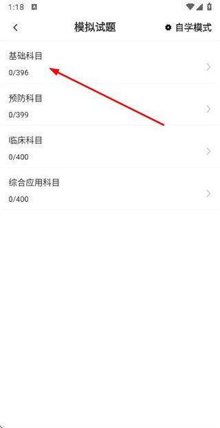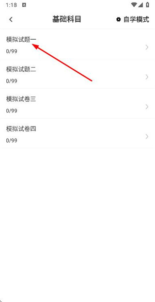 3、在基礎(chǔ)科目模擬試題列表頁(yè)面點(diǎn)擊目標(biāo)選項(xiàng),進(jìn)入該試題的題目頁(yè)面。