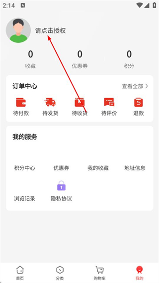 3、在個人頁面中,點擊請點擊授權(quán)區(qū)域,進入登錄頁面。