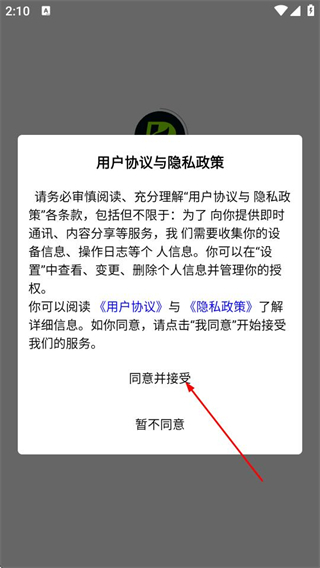 1、在用戶協(xié)議與隱私政策彈窗中,點擊同意,進入首頁。