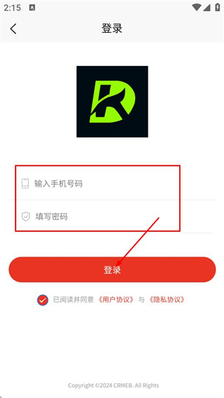 4、在登錄頁面,填寫手機號碼和密碼,點擊登錄,完成賬號登錄。
