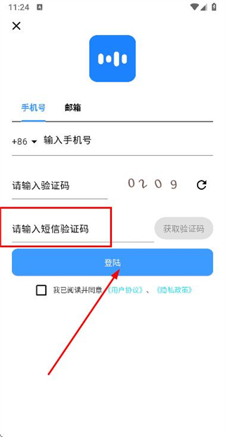 3、在驗(yàn)證碼輸入框中填寫收到的驗(yàn)證碼,點(diǎn)擊登錄完成賬號(hào)的登錄操作。