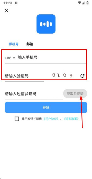 2、在手機(jī)登錄頁(yè)面填寫手機(jī)號(hào)和圖片驗(yàn)證碼,勾選協(xié)議后,點(diǎn)擊獲取驗(yàn)證碼。