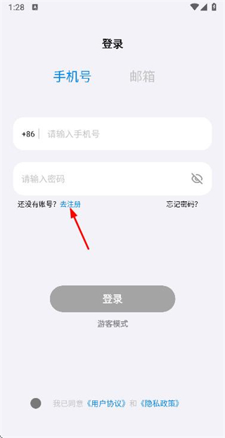 1、在登錄頁面點擊去注冊選項,進入注冊賬號頁面。
