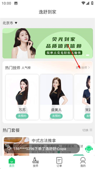1、在逸舒到家應(yīng)用首頁,點(diǎn)擊底部的技師選項(xiàng),進(jìn)入技師列表頁面。