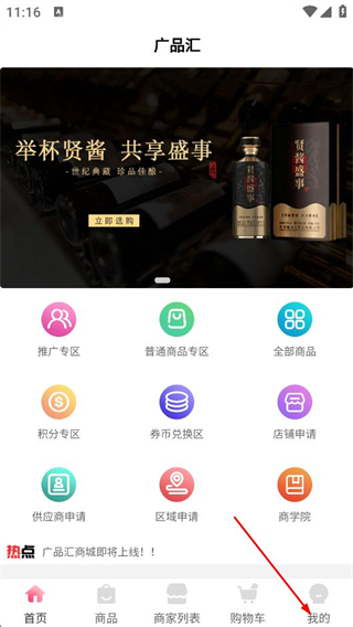 2、在廣品匯首頁,點擊底部的我的選項,進入個人中心頁面。