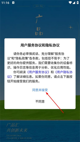 1、在用戶服務協(xié)議和隱私協(xié)議彈窗中,點擊同意,進入首頁。