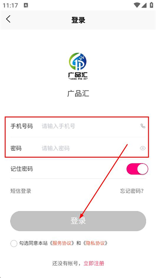 4、在登錄頁面,填寫手機號和密碼,點擊登錄,完成賬號登錄。