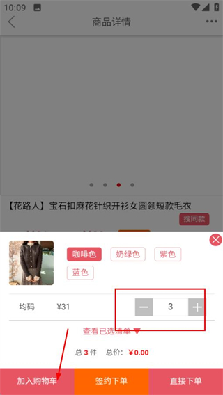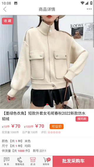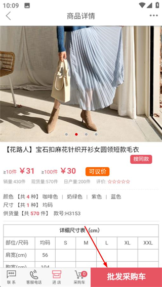 4、在商品詳情頁面,點擊批發(fā)采購車按鈕進入商品規(guī)格選擇界面。