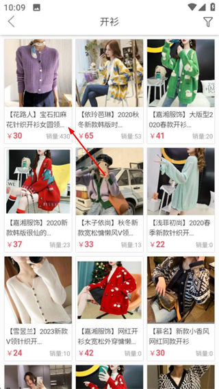 3、在開衫商品列表頁,點擊目標(biāo)商品進入商品詳情頁面。