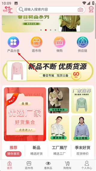 1、在毛衫匯首頁,點擊產(chǎn)品分類選項進入產(chǎn)品分類頁面。