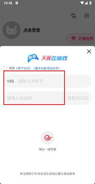 3、在登錄頁面填寫手機號和驗證碼,勾選協(xié)議后完成賬號登錄操作。