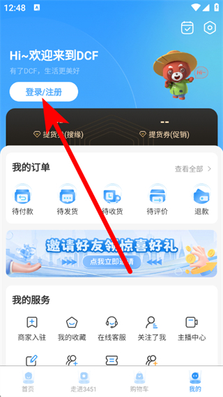 2、在我的頁面,點(diǎn)擊登錄注冊,進(jìn)入對應(yīng)界面。