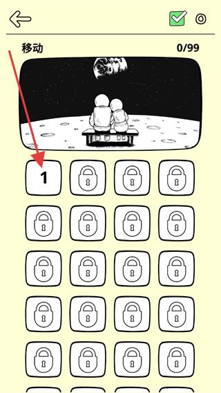 2、在移動板塊展開的關卡列表中,找到標有1的未鎖定關卡,點擊該關卡選項,就能進入對應的游戲關卡開始挑戰(zhàn)。