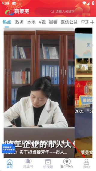 1、1、打開新萊蕪,在首頁點(diǎn)擊我的,進(jìn)入我的頁面。