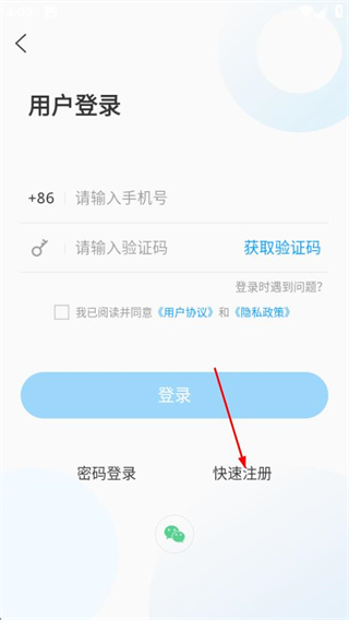 3、在用戶登錄界面,點(diǎn)擊快速注冊選項(xiàng),進(jìn)入注冊頁面。