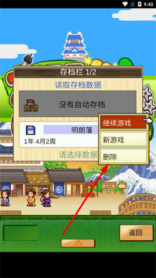 3、在彈出的菜單里找到刪除選項(xiàng),點(diǎn)擊這個(gè)選項(xiàng),此時(shí)會(huì)出現(xiàn)確認(rèn)提示框,詢問(wèn)是否刪除當(dāng)前存檔數(shù)據(jù)。