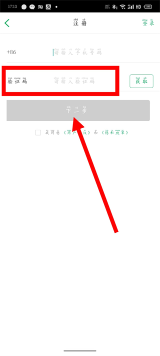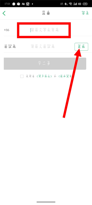 2、在注冊(cè)頁(yè)面,輸入手機(jī)號(hào)碼,點(diǎn)擊獲取驗(yàn)證碼。