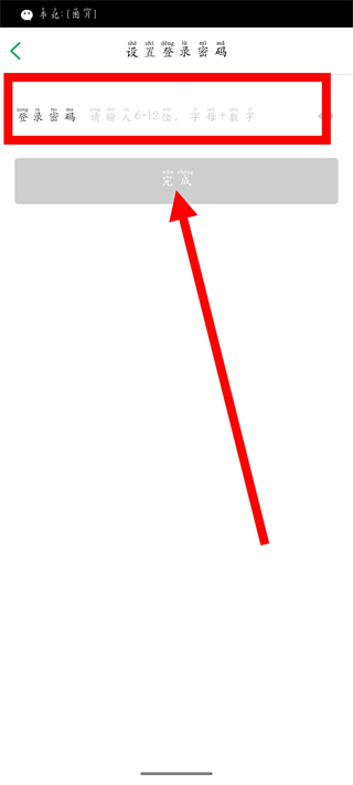 4、在設(shè)置登錄密碼頁(yè)面,在輸入框設(shè)置符合要求的密碼,點(diǎn)擊完成注冊(cè)。