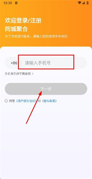 1、在使用協(xié)議隱私政策彈窗中點擊同意按鈕,進(jìn)入登錄頁面。