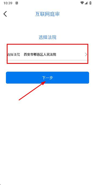 1、在互聯(lián)網(wǎng)庭審頁面選擇法院后,點擊下一步按鈕,進入驗證碼登錄頁面。